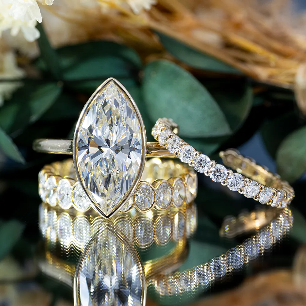 When creating a captivating stack, the cornerstone is always the engagement ring. Few shapes command attention with such elegance and elongation as the marquise cut, and a cohesive set provides the perfect starting point for building a legacy.